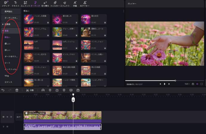 新しい音声ファイルがない場合で、元の音声トラックを調整するだけなら、動画を右クリックして「音声を分離」を選択します。音声ファイルが分離され、簡単に調整できます。