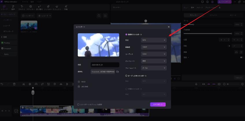 複数のデバイスやソーシャルメディア用の形式にエクスポート可能。